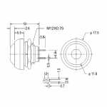 A rosca do botão é M12. Portanto, um furo de aproximadamente 13mm de diâmetro já é o suficiente para fazer o encaixe deste botão no local de instalação. O diâmetro da moldura de aro plástico preto é de 17.5mm.
