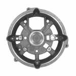 O mancal traseiro faz o fechamento do alternador. Cada mancal é feito com uma estrutura que assegura a absorção de esforços radiais e axiais e permite os regimes de rotação que o motor exige.