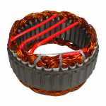No estator é produzida a corrente elétrica do alternador, induzida pelo campo magnético que age nos fios das bobinas do estator.