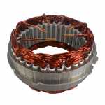 No estator é produzida a corrente elétrica do alternador, induzida pelo campo magnético que age nos fios das bobinas do estator.