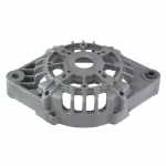 O mancal dianteiro faz o fechamento do alternador. Cada mancal é feito com uma estrutura que assegura a absorção de esforços radiais e axiais e permite os regimes de rotação que o motor exige.