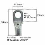 Este terminal tem um furo para parafuso na ponta de diâmetro 12mm, também conhecido por M12. No sistema imperial, essa medida é aproximadamente 1/2".