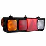 Conjunto de lanterna traseira tricolor com triângulo retrorrefletor e com lanterna lateral de lado esquerdo para carrocerias Guerra.