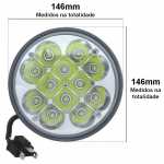 Por se tratar de um farol universal serve para carros, motos, barcos, caminhões, ônibus, jeeps, máquinas de construção, máquinas agrícolas, etc. Tem potência equivalente a 36W no farol alto e 18W perto da luz, com faixo luminoso de temperatura de até 7000K.