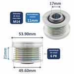 A polia com sistema de roda-livre (também conhecia como polia OAP - Overrunning Alternator Pulley) é a responsável por transmitir a energia mecânica para os componentes do alternador, que transformam o movimento em energia elétrica.