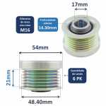 A polia com sistema de roda-livre (também conhecia como polia OAP - Overrunning Alternator Pulley) é a responsável por transmitir a energia mecânica para os componentes do alternador, que transformam o movimento em energia elétrica.