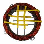 No estator é produzida a corrente elétrica do alternador, induzida pelo campo magnético que age nos fios das bobinas do estator.