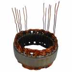 No estator é produzida a corrente elétrica do alternador, induzida pelo campo magnético que age nos fios das bobinas do estator.