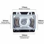Este farol possui encaixe para lâmpada H1. A fabricação é feita com lente de vidro, aro e suporte de plástico e carcaça refletora de aço, o que permite uma ótima durabilidade e garante visibilidade e segurança na estrada mesmo em dias nublados e chuvosos. Além disso, a propriedade refletora da carcaça não prejudica a visão dos motoristas do sentido oposto.