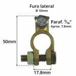 Este terminal pode ser aplicado tanto nos bornes negativos quanto nos bornes positivos da bateria. Para aplicar nos negativos, basta um pouco a mais de aperto para o ajuste do terminal aos bornes da bateria ficar adequadamente justo.