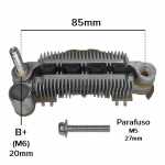 Nota: o parafuso B+ deste retificador tem 20mm de comprimento, medidos de ponta a ponta. O retificador tem 8 diodos de 35A cada, possui triodo, possui capacitor e tem parte plástica.