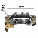 Nota: o parafuso B+ deste retificador tem 18mm de comprimento, medidos da ponta do parafuso até a superfície do retificador. O retificador suporta até 105A, tem 6 diodos de 35A cada, não possui triodo e tem parte plástica.