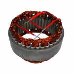 No estator é produzida a corrente elétrica do alternador, induzida pelo campo magnético que age nos fios das bobinas do estator.