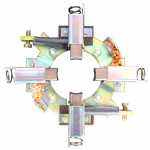 Sua função é a de fixar as escovas, permitindo que ocorra o contato com o coletor do induzido e, assim, tornando possível a alimentação elétrica.