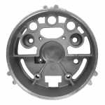 O mancal traseiro faz o fechamento do alternador. Cada mancal é feito com uma estrutura que assegura a absorção de esforços radiais e axiais e permite os regimes de rotação que o motor exige.