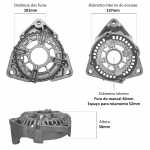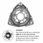 Atenção: este mancal não utiliza o rolamento que o mancal original da Bosch. Para utilizar este mancal é necessário o uso em conjunto do rolamento modelo 6304-17 de 17 x 52 x 15 mm (diâmetro interno x diâmetro externo x altura).
