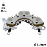 Nota: o parafuso B+ deste retificador tem 37mm de comprimento, medidos da ponta do parafuso até a superfície do retificador. O retificador suporta até 150A, tem 8 diodos de 50A cada e possui triodo.