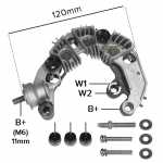 | Conteúdo da embalagem | 1 (um) retificador novo 3 (três) diodos negativos de 35A novos 3 (três) arruelas de calço novas 2 (dois) parafusos M5 x 24mm de comprimento (medidos da parte inferior da cabeça do parafuso até a ponta) novos 1 (um) parafuso prisioneiro M5 x 36mm (medidos de ponta a ponta) com 10mm de comprimento numa ponta (medidos da ponta até o começo da porca intermediária) e 22mm de comprimento na outra ponta (medidos da ponta até o começo da porca intermediária) novo |