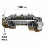 Nota: o parafuso B+ deste retificador tem 18mm de comprimento, medidos da ponta do parafuso até a superfície do retificador. O retificador suporta até 105A, tem 8 diodos de 35A cada, possui triodo, possui capacitor e tem parte plástica.