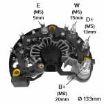 Nota: o parafuso B+ deste retificador tem 20mm de comprimento, medidos da ponta do parafuso até a superfície do retificador. O retificador suporta até 180A, tem 8 diodos de 60A cada, possui triodo e possui capacitor.