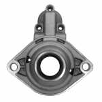 O mancal dianteiro fixa o motor de partida no veículo, além de sustentar o conjunto. Cada mancal é feito com uma estrutura que assegura a absorção de esforços radiais e axiais e permite os regimes de rotação que o motor exige.