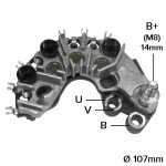 Nota: o parafuso B+ deste retificador tem 14mm de comprimento, medidos da ponta do parafuso até a superfície do retificador. O retificador suporta até 180A e tem 3 diodos de 60A.