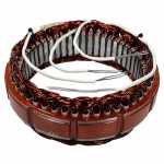 No estator é produzida a corrente elétrica do alternador, induzida pelo campo magnético que age nos fios das bobinas do estator.
