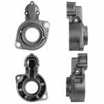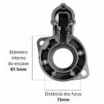 O mancal dianteiro fixa o motor de partida no veículo, além de sustentar o conjunto. Cada mancal é feito com uma estrutura que assegura a absorção de esforços radiais e axiais e permite os regimes de rotação que o motor exige.