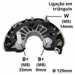 Nota: o parafuso B+ deste retificador tem 33mm de comprimento, medidos da ponta do parafuso até a superfície do retificador. O retificador tem 6 diodos avalanche de 50A cada e não possui triodo.